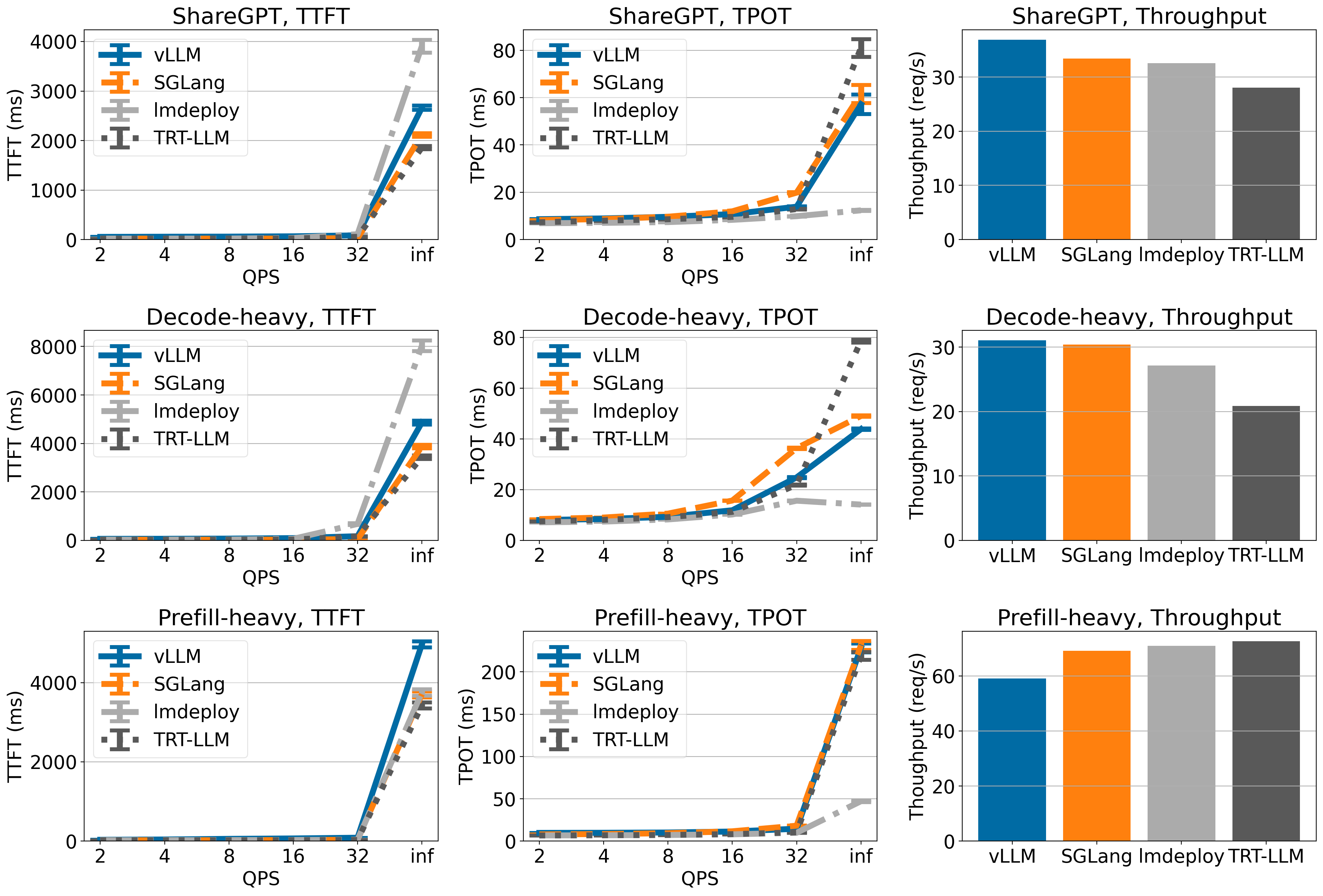 - Throughput is measured under QPS inf (meaning that all requests come at once).
